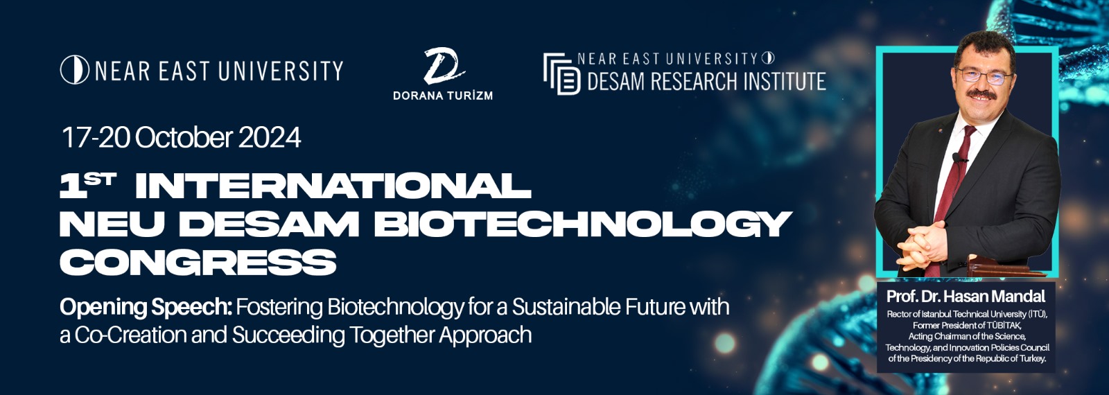Hybrid Conference | 17 – 20 October 2024 | Near East University, Nicosia, Northern Cyprus The 1st INTERNATIONAL NEU DESAM BIOTECHNOLOGY CONGRESS is an international platform that brings together leading scientists and researchers in the fields of biotechnology, medicine and medical sciences. Dear Colleagues, We cordially invite you to participate in the ‘First International NEU DESAM Biotechnology Congress 2024’, which will be held in Nicosia, North Cyprus, from October 17-20, 2024. The ‘First International NEU DESAM Biotechnology Congress 2024’ aims to provide a platform for individuals from various areas of biotechnology to present and discuss their latest findings, developments, and strategies. Participants from academia and the clinical field, working in medicine, dental medicine, biotechnology, health sciences, and medical engineering, will come together to acquire cutting-edge knowledge and have the opportunity to establish new contacts and collaborations. The congress will be held in Nicosia, the vibrant capital city of Northern Cyprus, a country that harmoniously blends ancient history, sandy beaches, natural beauty, and cutting-edge innovation. Nicosia uniquely offers a wealth of extraordinary historical and touristic sites that captivate the imagination. Near East University, also situated in this dynamic city, boasts one of the largest museums in the region, the illustrious 'Modern Art Museum'. Additionally, it is home to Cyprus's only car museum and an expansive open-space museum that sprawls across the picturesque campus, inviting congress attendees to explore and be inspired by the rich cultural and scientific heritage of the Eastern Mediterranean. We encourage you to present your work and participate in this exciting event, and look forward to welcoming you to Nicosia, North Cyprus in October 2024 for the ‘First International NEU DESAM Biotechnology Congress 2024’. Prof. Dr. Tamer Şanlıdağ KEYNOTE SPEAKERS SESSIONS Early Registration Hybrid (Outside TRNC) Participation: $300 30% discount for Near East University Students and Academicians Early Registration Hybrid (Outside TRNC) Participation: $200 30% discount for Near East University Students and Academicians Registration With Accommodation: $800 Biotech Company Supports Gold: $3000 Silver: $2000 Bronze: $1000 Bronz Sponsor Bronz Sponsor Bronz Sponsor